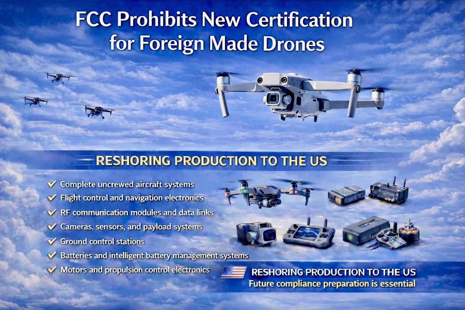 Companies that rely on foreign suppliers for RF modules or navigation systems may face higher compliance risk if those components are considered critical UAS elements.