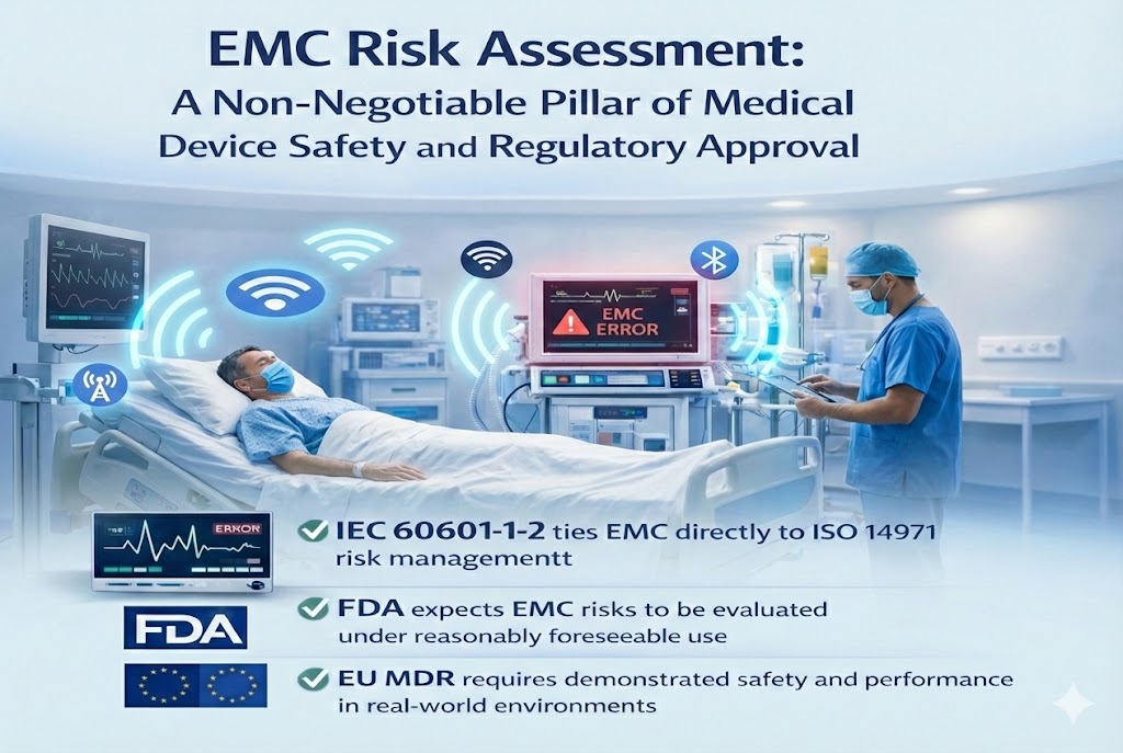 – is no longer optional. IEC 60601-1-2 explicitly links EMC to ISO 14971 risk management, and both FDA and EU MDR expectations require manufacturers to demonstrate safety and performance in the environments where devices are intended for use.